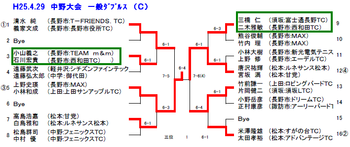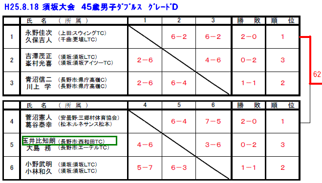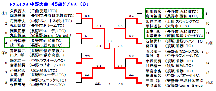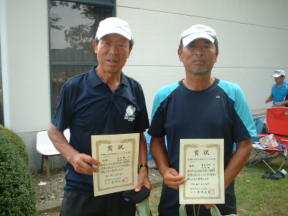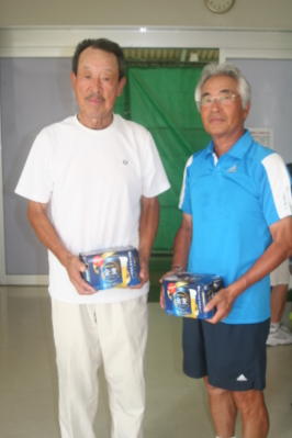 男子65才以上の部で太田・間瀬ペア(西和田TC)が大激戦の末、西澤・浅野ペアを