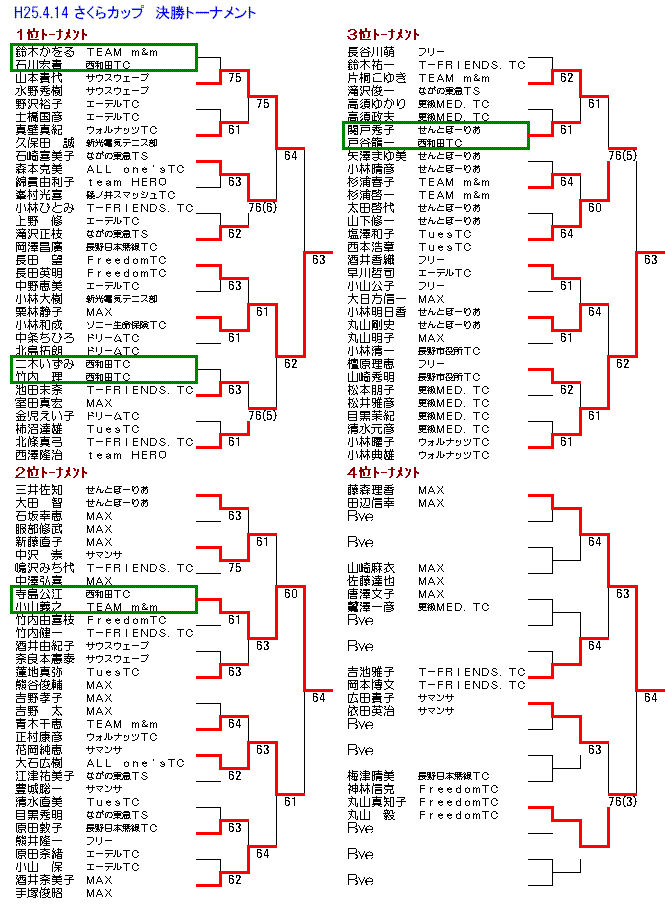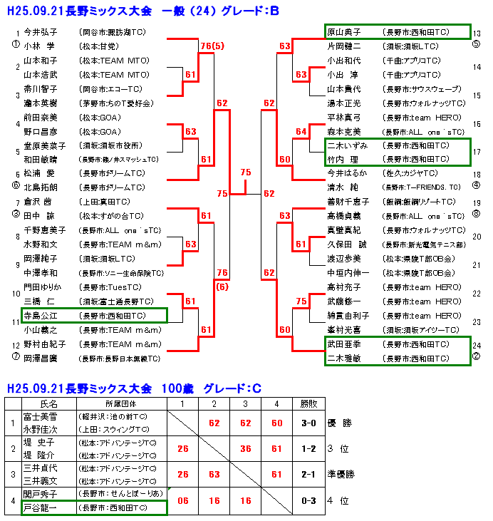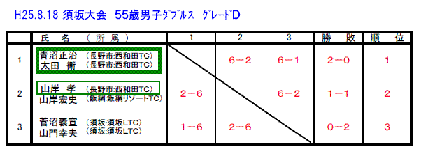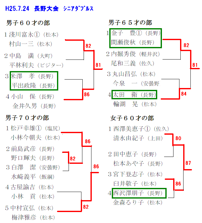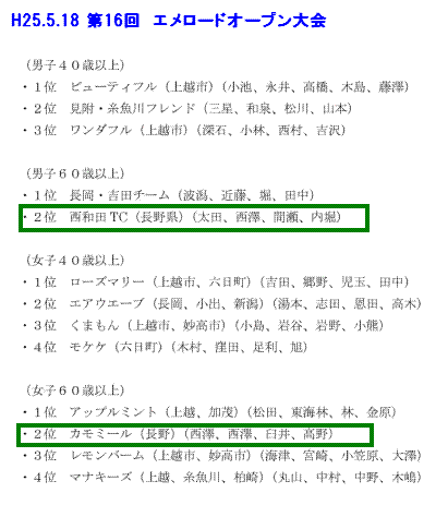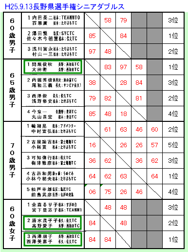 60才以上の女子の部でも西澤朋子・西澤美恵子ペアが優勝し清水・高野ペア