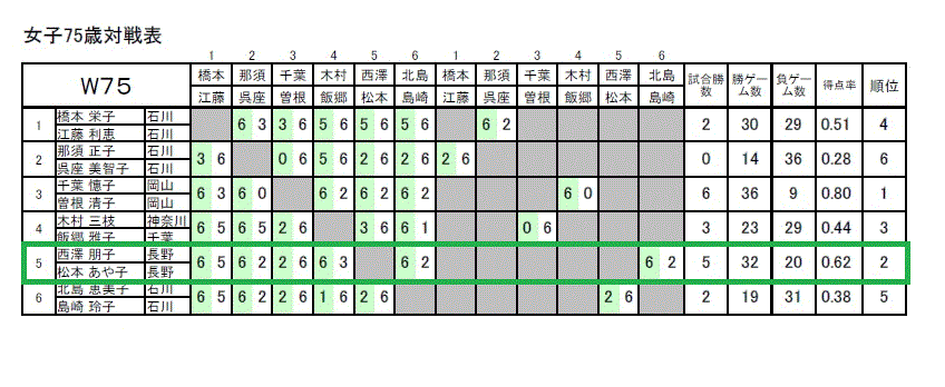 2022(R4).10.4 北信越シニアダブルス大会(75歳女子) 【石川県シニアテニス連盟主催】