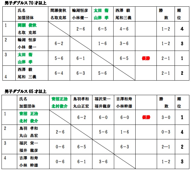 2020.10.14 長野県シニア選手権(65歳・70歳ダブルス) 【長野県シニア連盟主催】